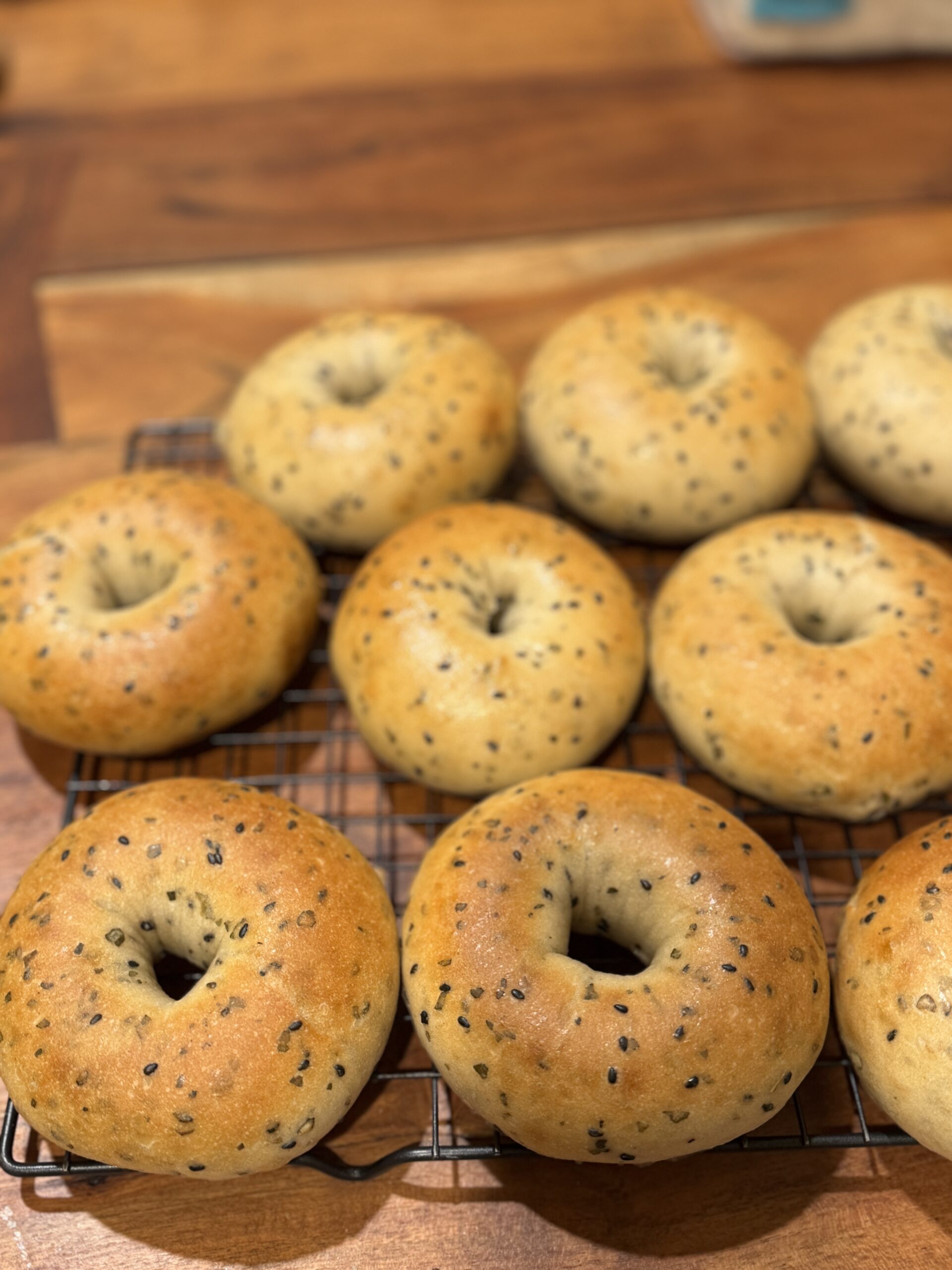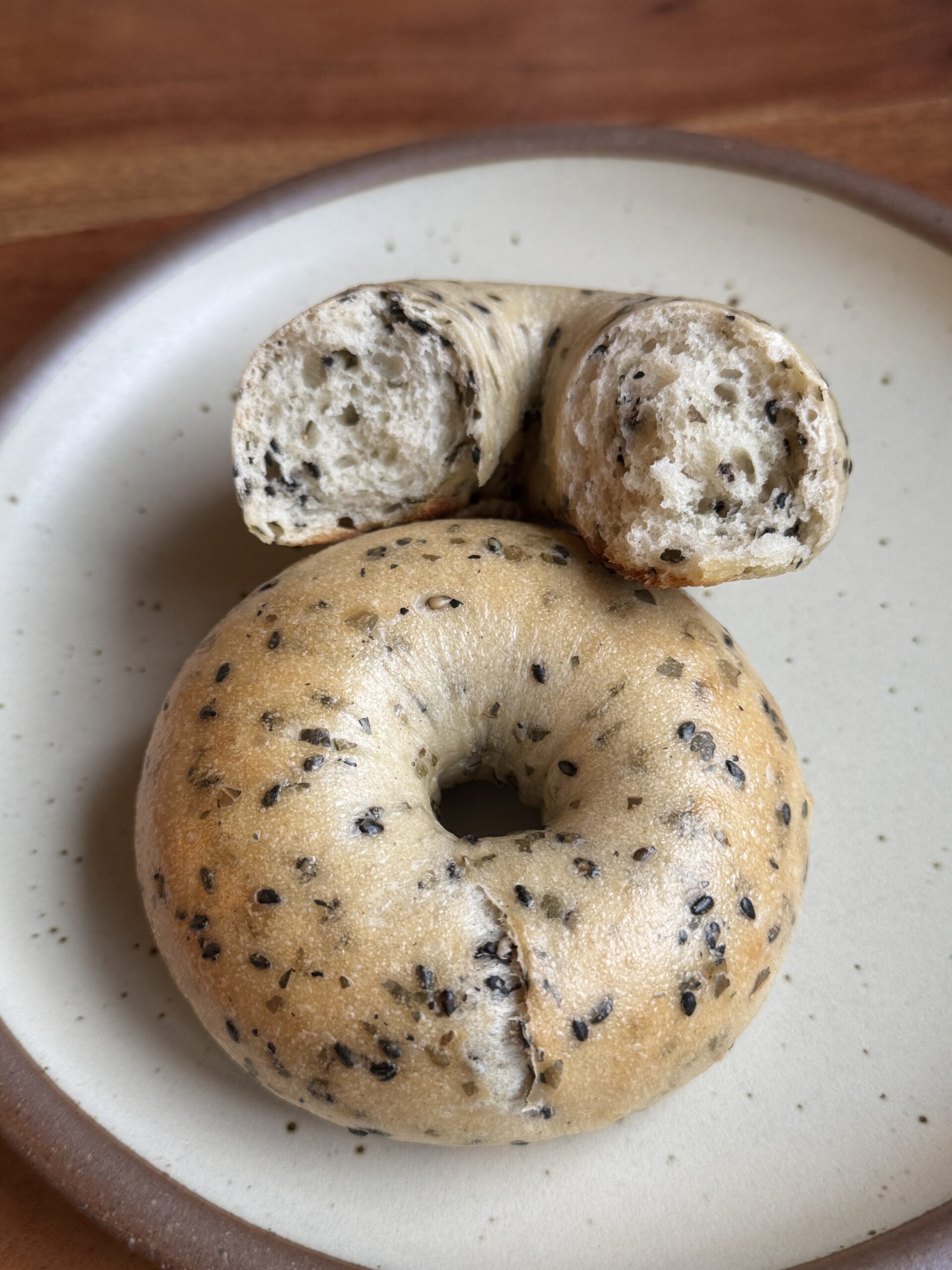 A savory bagel made with natural sourdough and a touch of yeast, infused with fragrant Sichuan pepper leaves and nutty black sesame. Aromatic, balanced, and gently warming.